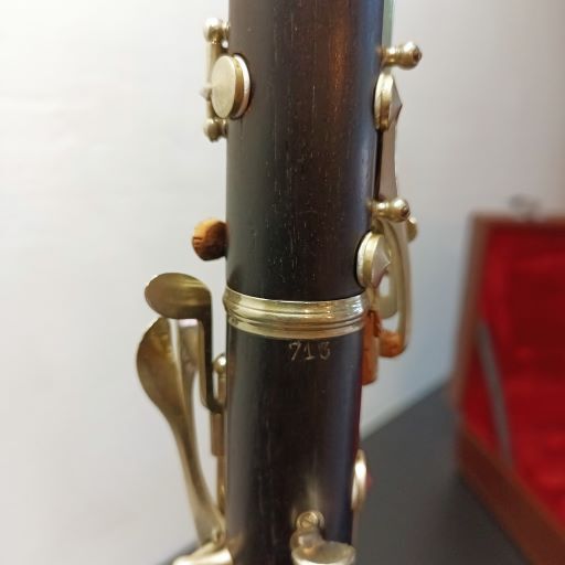 Don’t let the name Bundy fool you! This is not your average Bundy student clarinet. Before joining with Selmer and focusing on student-line instruments, G.M. Bundy instruments were manufactured to a superior quality. Serial number 713 most likely dates this clarinet back to the 1920s-1930s.